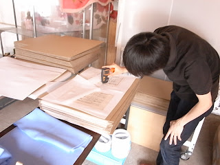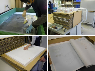 乾燥作業は終了し、現在はドライ・クリーニングや綴じ直しを行っている。