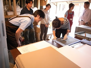 作業者の皆さんに技術を伝授する国立公文書館修復係のスタッフ。