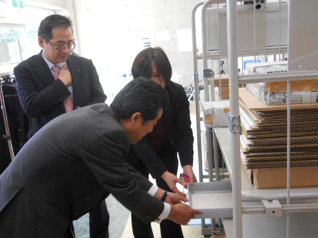 また16日には法政大学と陸前高田市議会との間で結ばれた包括的な連携協力のための協定締結のために訪れた伊藤明彦・市議会議長らの一行が現場を訪れ、復旧事業の説明とともに、作業スタッフが行なっているドライ・クリーニング、洗浄、乾燥・フラットニングという一連の作業を見学しました。