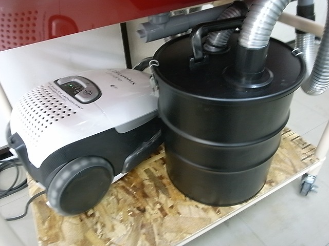 ボックスにはカビやアスベストも捕捉し外に逃さないHEPA(High Efficiency Particulate Air Filter)が着いた掃除機を装着します(掃除機は利用者が購入します)。お手持ちの家庭用の掃除機でもHEPAあるいはULPA(HEPAよりもさらに微細な塵埃をフィルタリングできるレベル)レベルのものならば装着が可能です。 また、掃除機のHEPAによるフィルタリングの前に、大きな塵埃をあらかじめ除去できるフィルターを着けました(写真の黒いタンク)。二重のフィルタリングにより掃除機のHEPAフィルターの交換頻度を大幅に下げることができます。