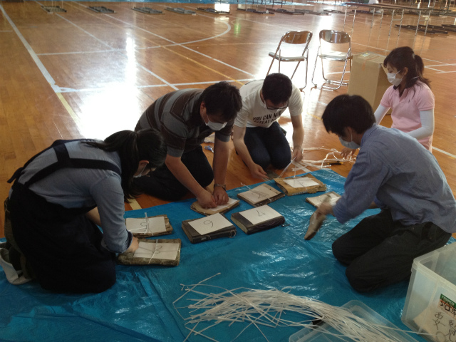 今回の活動は、白岩洋子氏(紙本・写真修復家)から支援要請があり、東京文書救援隊スタッフが現地を訪問。協議の結果、未洗浄の賞状約300枚、プリント写真など紙類への処置のために、ドライクリーニング、洗浄、乾燥・フラットニングに必要な資材の提供と現地での東文救システムの設営、スキル・トレーニングが決まりました。