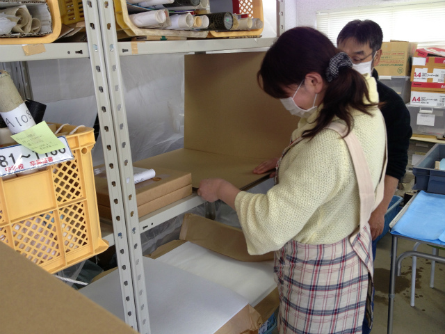 東文救システムが導入されました。「思い出の品」は、陸前高田市から委託を受けた陸前高田市社会福祉協議会の思い出の品スタッフが、ボランティア等との恊働のもと、津波で流されたのちに届けられた写真や卒業証書、トロフィー、盾、ご位牌、木像、スポーツ用品、ランドセル等の「思い出の品」を、もとの持ち主の方にお返しできるようにと、活動しています。現在、4名のスタッフが正式雇用されており、今後年単位でこの活動が継続されるとのことです。