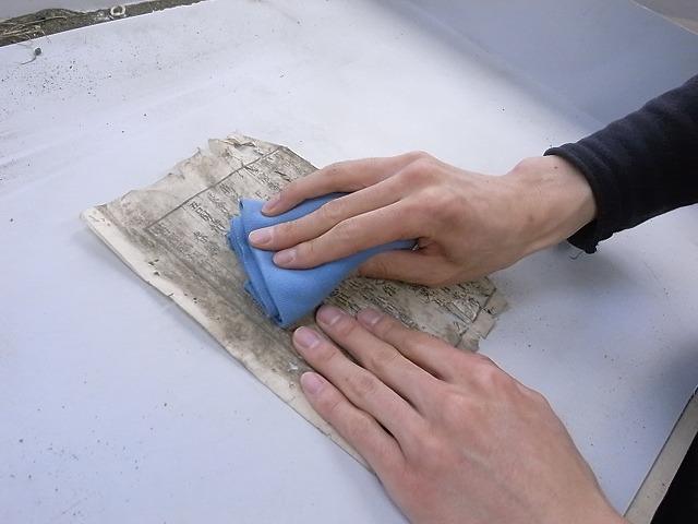 この革新的な乾燥法は1988年に米国のコンサーバターの R. Futernick が提案し、90年代には米国の一部の工房で使われるようになった。2000年代に入ると、ヨーロッパのコンサベーション機関でも採用するところが出てきた。救援隊の構成メンバーである株式会社資料保存器材も同様である。そして、今年(2011年)になり、シュトゥットガルトの Staatliche Akademie der Bildenden Künste はエア・ストリーム乾燥法の科学的な裏付けを行い、Restaurator 誌 に Air Stream Drying of Paper として発表した。今回、著者らの快諾の元に、以下に全訳を掲載した。著者の一人であり、ヨーロッパの紙媒体の保存科学の指導的役割を果たしている Gerhard Banik 氏からは、翻訳許諾とともに、「今回の大震災の被災資料の救助に役立ててもらえたらことのほか嬉しい」という言葉が添えられたこともお知らせしたい。